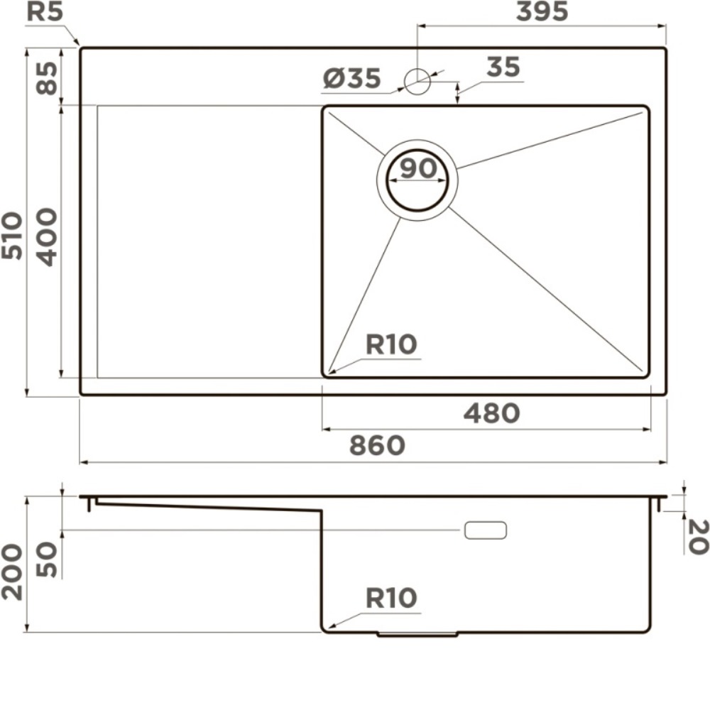 Мойка кухонная Omoikiri из коллекции Akisame 86-GB-R Side имеет размеры 860х510 мм., изготовлена из нержавеющей стали. Форма — прямоугольная, одна чаша с отверстием для смесителя. Сифон в комплекте. Ширина чаши 48. Врезной монтаж. Имеется крыло.