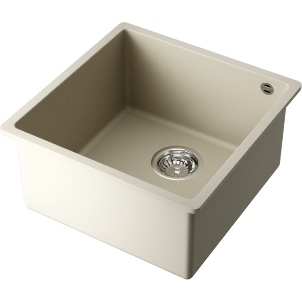 Мойка кухонная Omoikiri из коллекции Bosen 44-U-BE имеет размеры 440х440 мм., изготовлена из искусственного гранита. Форма — прямоугольная, одна чаша без отверстия для смесителя. Сифон в комплекте. Ширина чаши 40. Подстольный монтаж.