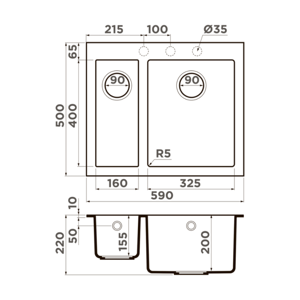 Мойка кухонная Omoikiri из коллекции Bosen 59-2-GR имеет размеры 590х500 мм., изготовлена из искусственного гранита. Форма — прямоугольная, одна чаша с отверстием для смесителя. Сифон в комплекте. Ширина чаши 32,5. Врезной монтаж. Имеется дополнительная чаша.