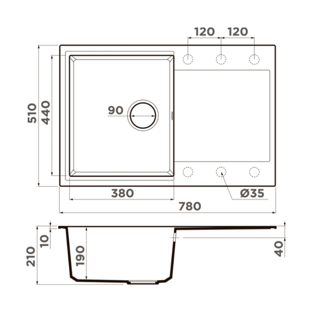 Мойка кухонная Omoikiri из коллекции Daisen 78-SA имеет размеры 780х510 мм., изготовлена из искусственного гранита. Форма — прямоугольная, одна чаша без отверстия для смесителя. Сифон в комплекте. Ширина чаши 38. Врезной монтаж. Имеется крыло.