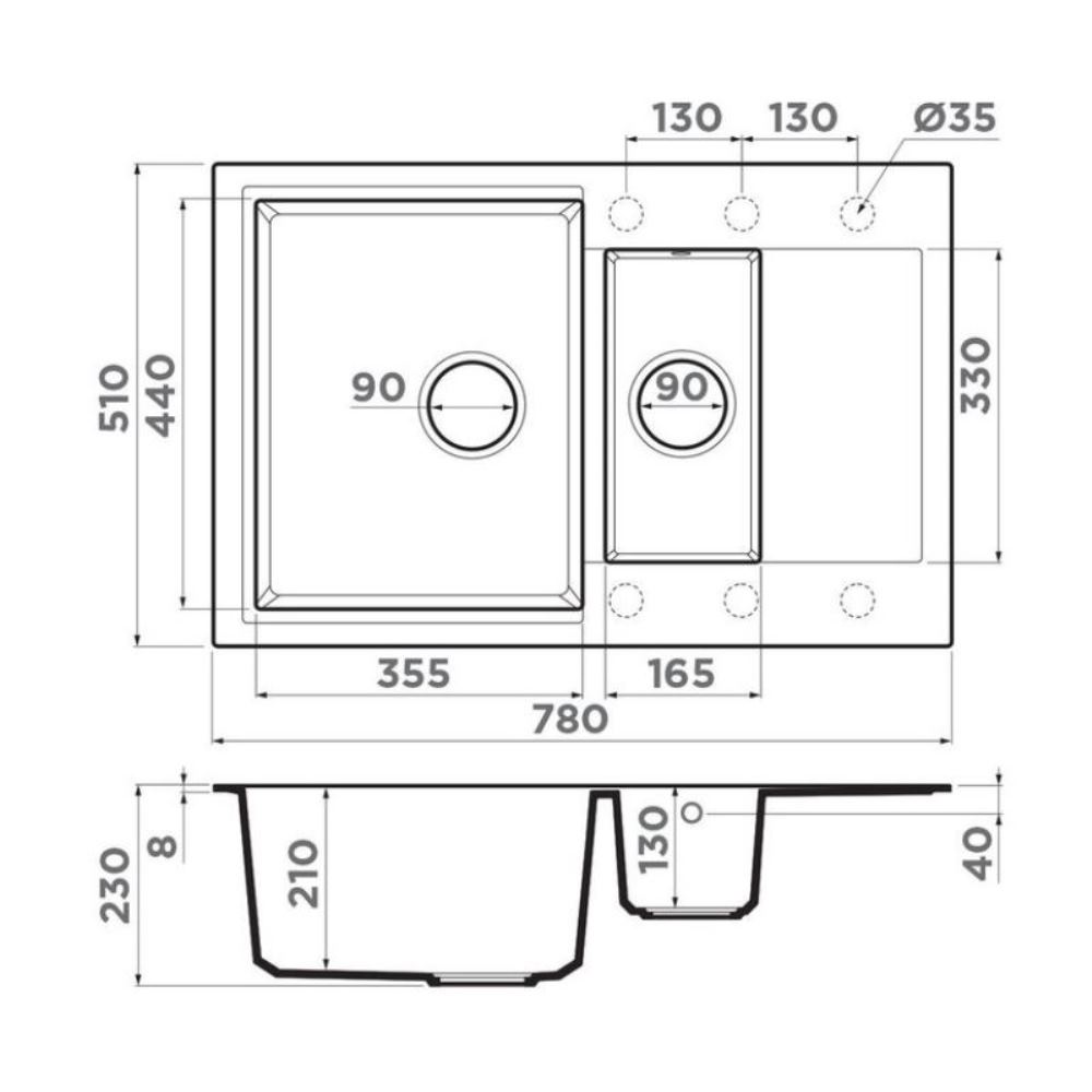 Мойка кухонная Omoikiri из коллекции Daisen 78-2T-SA имеет размеры 780х510 мм., изготовлена из искусственного гранита. Форма — прямоугольная, одна чаша без отверстия для смесителя. Сифон в комплекте. Ширина чаши 35,5. Врезной монтаж. Имеется дополнительная чаша.