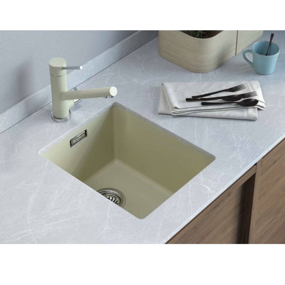 Мойка кухонная Omoikiri из коллекции Kata 34-U-GR имеет размеры 340х420 мм., изготовлена из искусственного гранита. Форма — прямоугольная, одна чаша без отверстия для смесителя. Сифон в комплекте. Ширина чаши 30. Подстольный монтаж