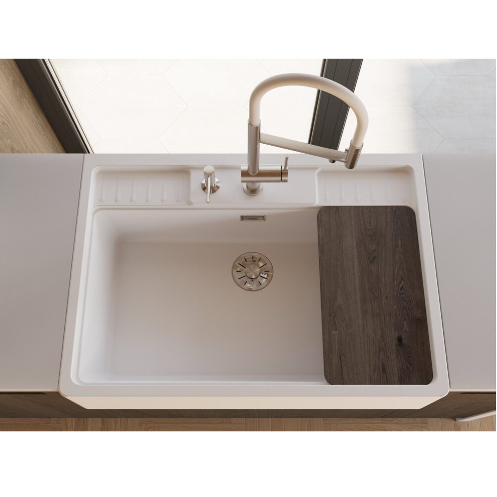 Мойка кухонная Omoikiri из коллекции Kinokawa 90-GB имеет размеры 900х635 мм., изготовлена из искусственной керамики. Форма — прямоугольная, одна чаша без отверстия для смесителя. Сифон в комплекте. Ширина чаши 84. Фронтальный монтаж.