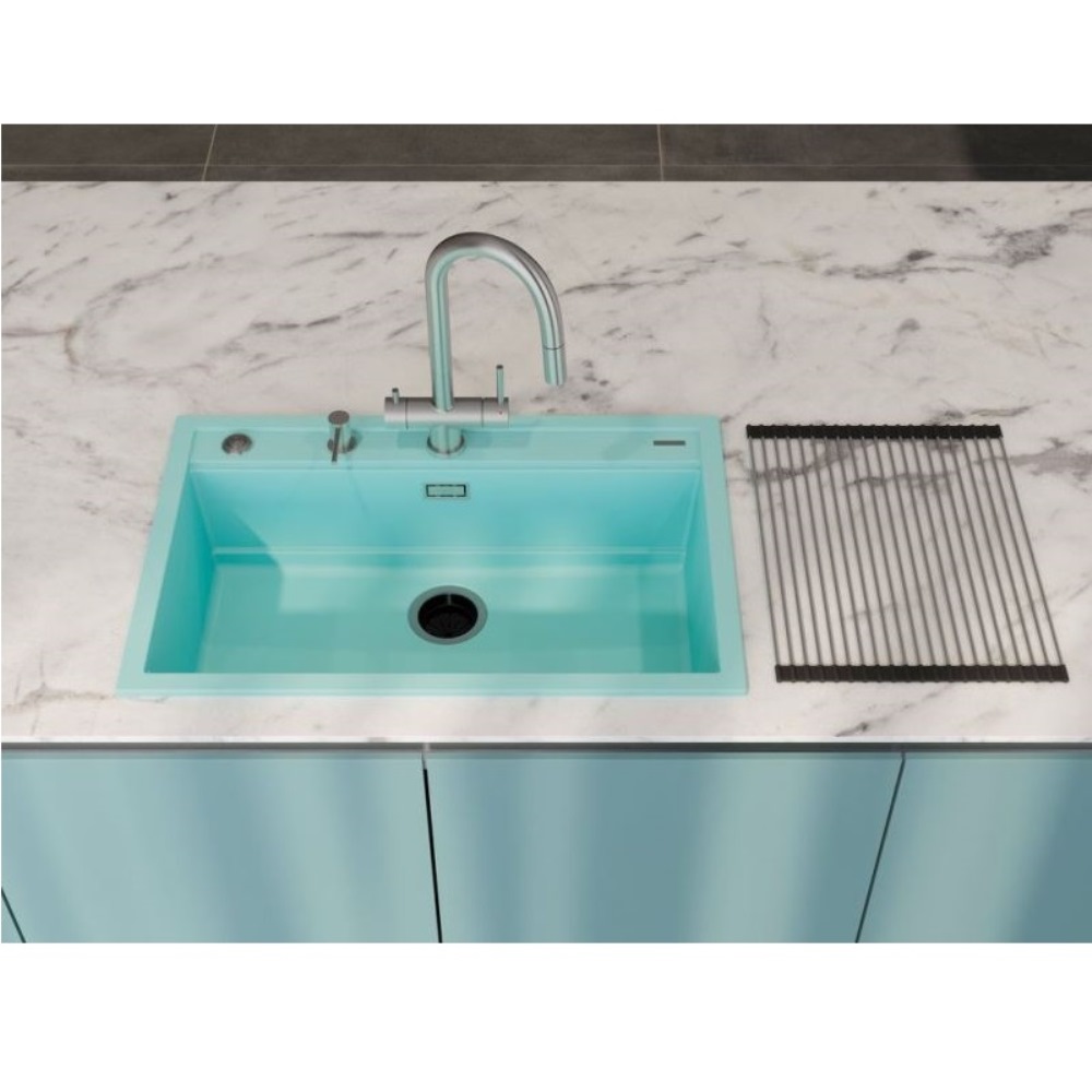 Мойка кухонная Omoikiri из коллекции Kitagawa 79-LB-WG имеет размеры 790х510 мм., изготовлена из искусственной керамики. Форма — прямоугольная, одна чаша без отверстия для смесителя. Сифон в комплекте. Ширина чаши 72,6. Врезной монтаж.