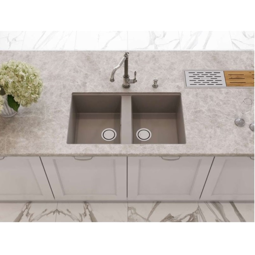 Мойка кухонная Omoikiri из коллекции Kitagawa 83-2-U-GB имеет размеры 836х488 мм., изготовлена из искусственной керамики. Форма — прямоугольная, две чаши без отверстия для смесителя. Сифон в комплекте. Ширина чаши 36,5. Врезной монтаж.