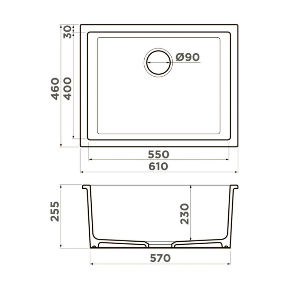 Мойка кухонная Omoikiri из коллекции Okinoshima 61-U/I-BL имеет размеры 610х460 мм., изготовлена из искусственной керамики. Форма — прямоугольная, одна чаша без отверстия для смесителя. Сифон в комплекте. Ширина чаши 55. Подстольный и врезной монтаж.