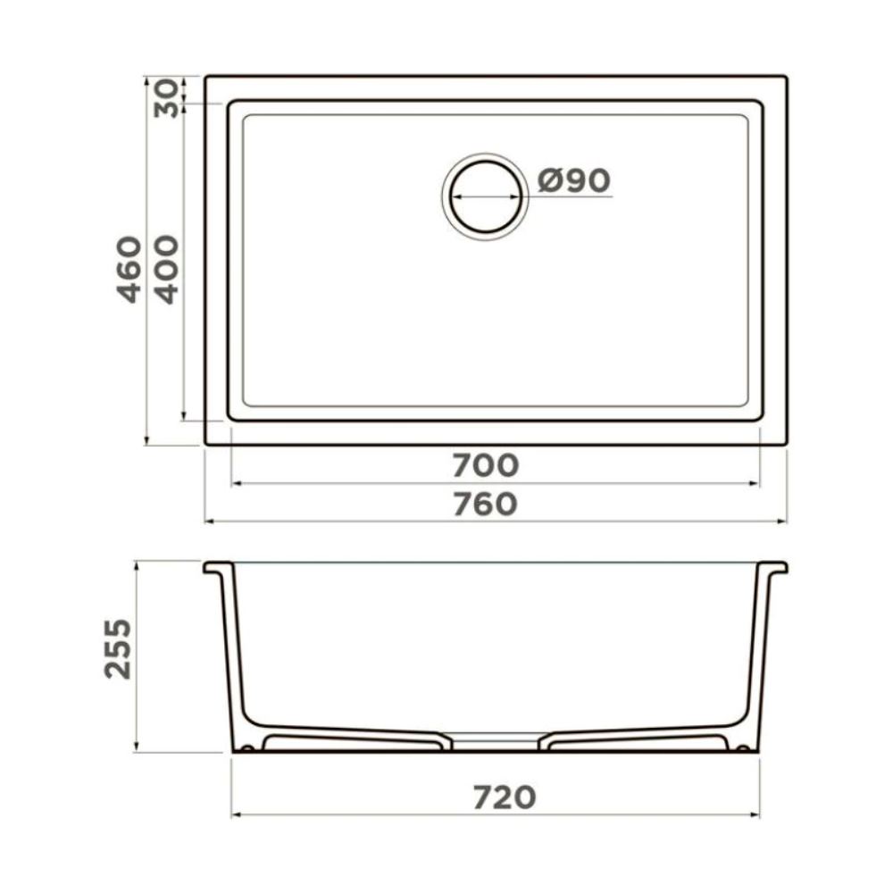 Мойка кухонная Omoikiri из коллекции Okinoshima 76-U/I-CС имеет размеры 760х460 мм., изготовлена из искусственной керамики. Форма — прямоугольная, одна чаша без отверстия для смесителя. Сифон в комплекте. Ширина чаши 70. Подстольный и врезной монтаж.