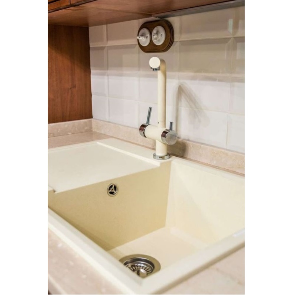 Мойка кухонная Omoikiri из коллекции Sakaime 78-WH имеет размеры 780х435 мм., изготовлена из искусственного гранита. Форма — прямоугольная, одна чаша без отверстия для смесителя. Сифон в комплекте. Ширина чаши 38,6. Врезной монтаж. Имеется крыло.