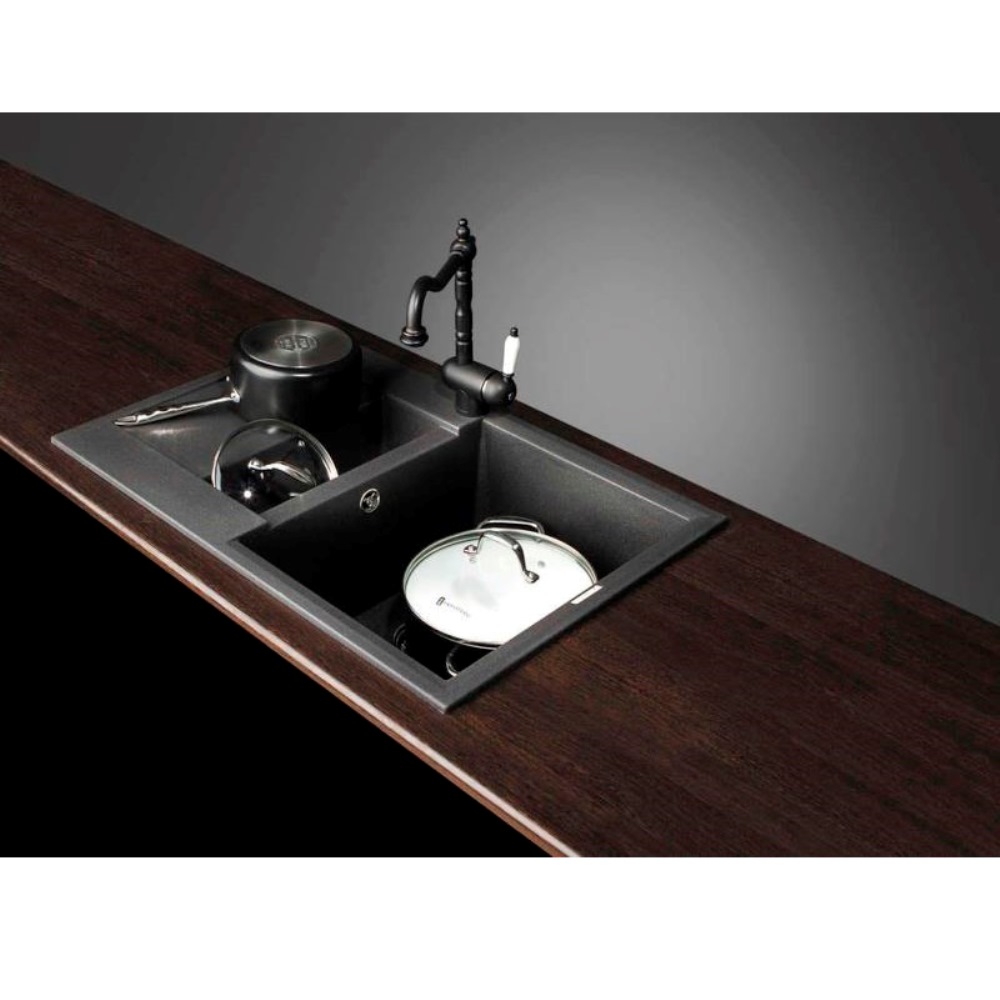Мойка кухонная Omoikiri из коллекции Sakaime 78-2-BL имеет размеры 780х500 мм., изготовлена из искусственного гранита. Форма — прямоугольная, одна чаша без отверстия для смесителя. Сифон в комплекте. Ширина чаши 36. Врезной монтаж. Имеется дополнительная чаша и крыло.