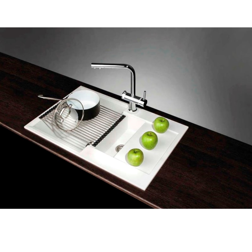 Мойка кухонная Omoikiri из коллекции Sakaime 78-2-DC имеет размеры 780х500 мм., изготовлена из искусственного гранита. Форма — прямоугольная, одна чаша без отверстия для смесителя. Сифон в комплекте. Ширина чаши 36. Врезной монтаж. Имеется дополнительная чаша и крыло.
