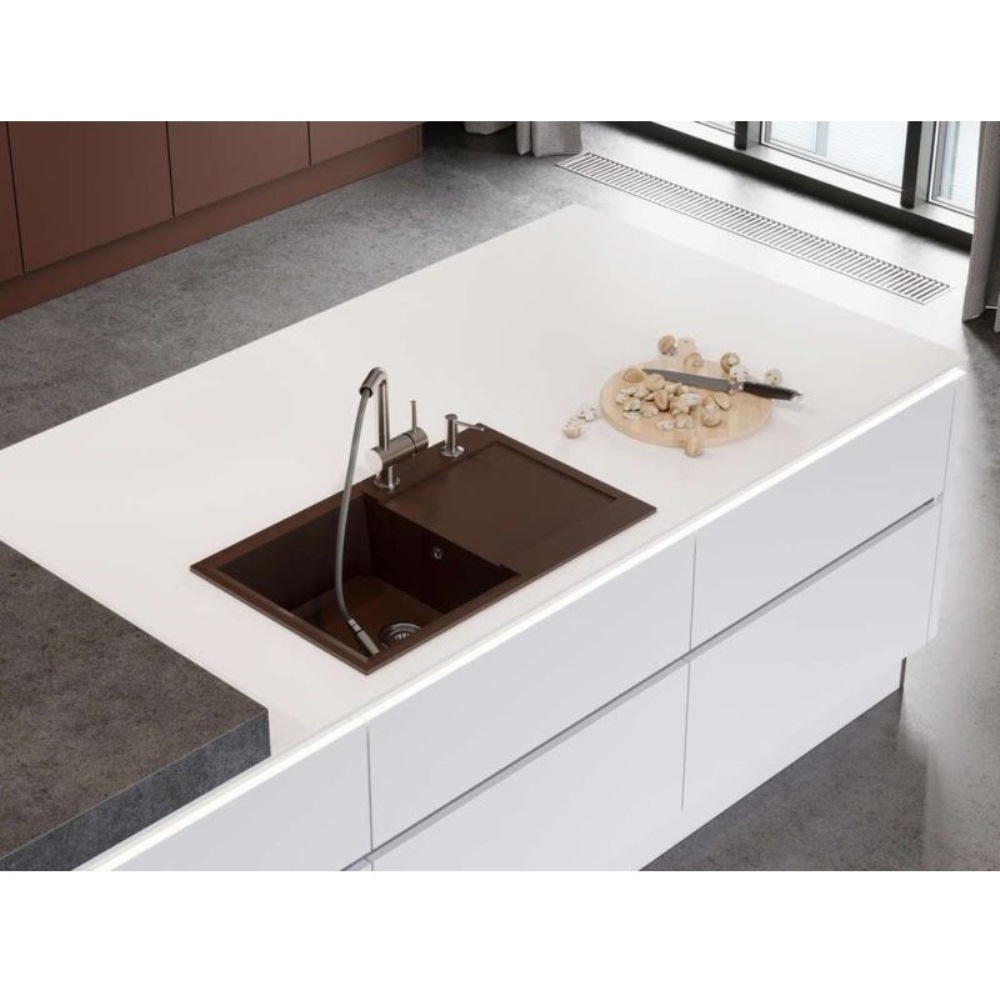 Мойка кухонная Omoikiri из коллекции Sakaime 79-BL имеет размеры 790х500 мм., изготовлена из искусственного гранита. Форма — прямоугольная, одна чаша без отверстия для смесителя. Сифон в комплекте. Ширина чаши 39. Врезной монтаж. Имеется крыло.