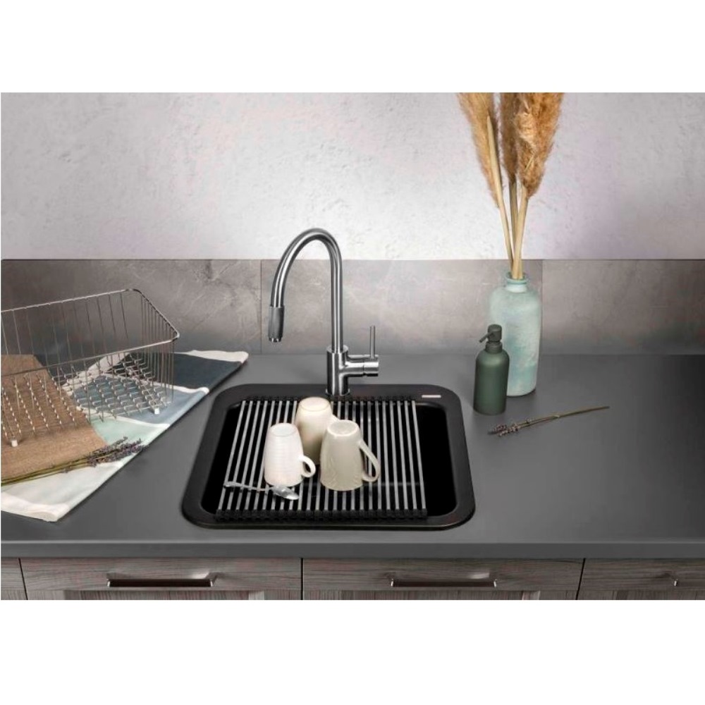 Мойка кухонная Omoikiri из коллекции Tasogare 51-SA имеет размеры 510х510 мм., изготовлена из искусственного гранита. Форма — квадратная, одна чаша без отверстия для смесителя. Сифон в комплекте. Ширина чаши 44. Врезной монтаж.