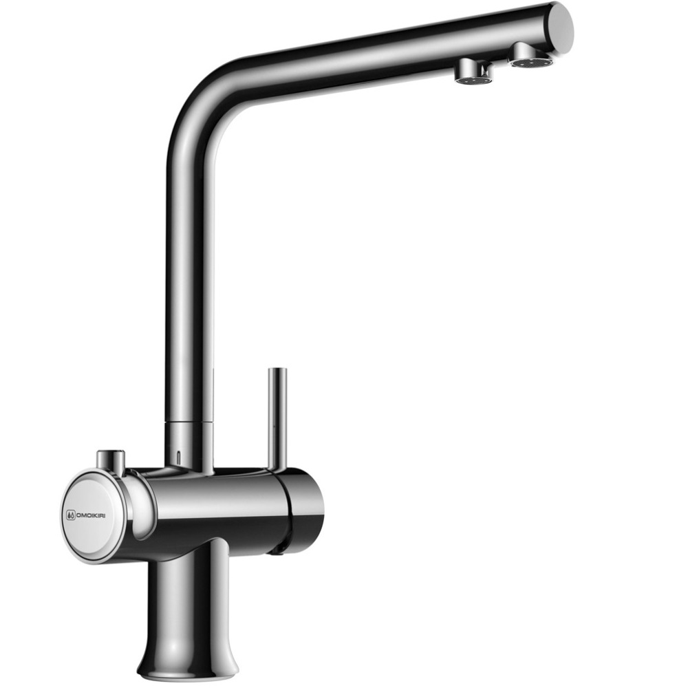 Смеситель для кухни Omoikiri Hotaru с подключением фильтра оснащен рычажным управлением для регулировки температуры и напора воды. Горизонтальный монтаж на 1 отверстие. Поворотный излив 176 мм.