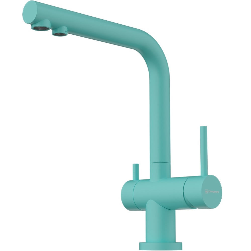 Смеситель для кухни Omoikiri Nagano с подключением фильтра оснащен рычажным управлением для регулировки температуры и напора воды. Горизонтальный монтаж на 1 отверстие. Поворотный излив 176 мм.