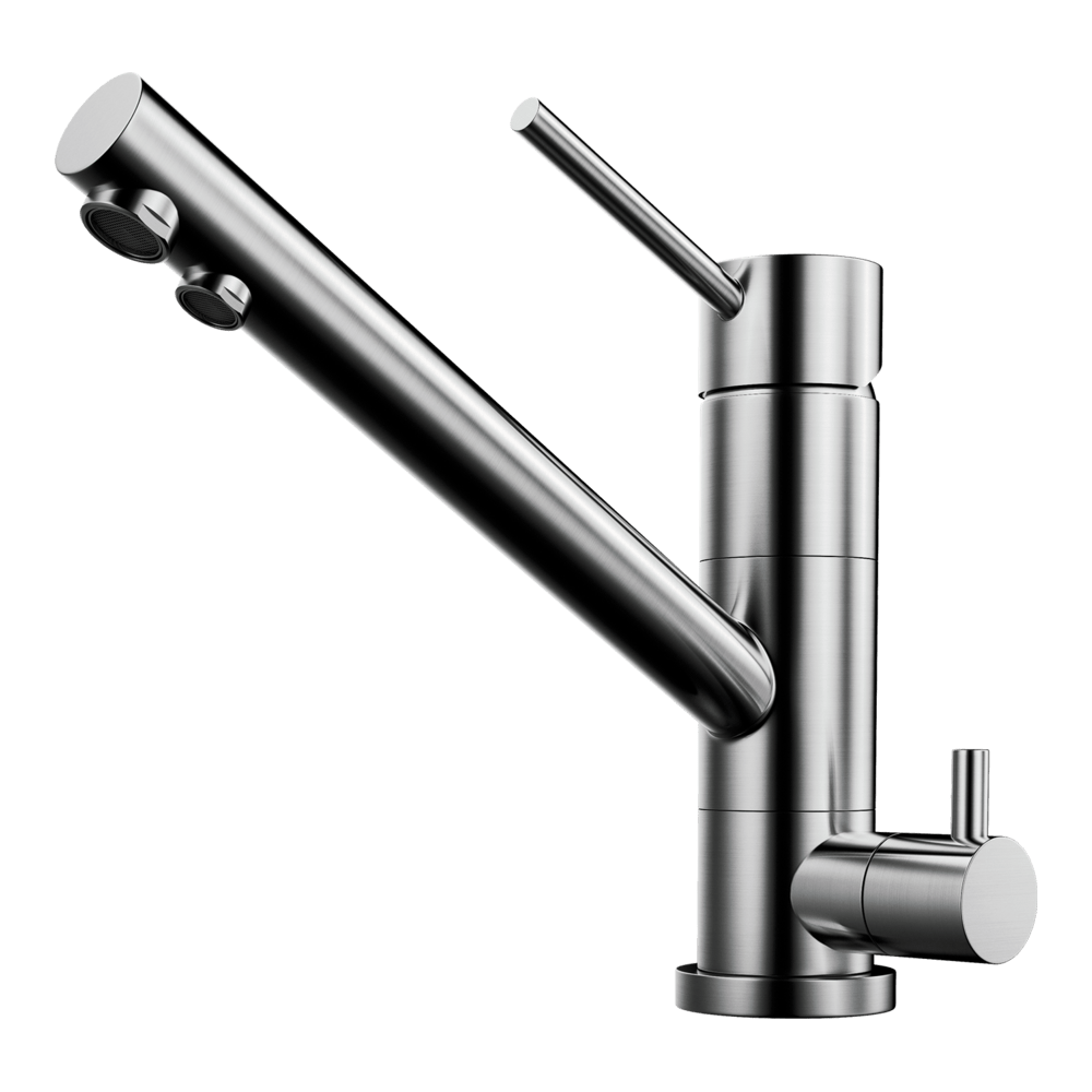 Смеситель для кухни Omoikiri Tonami с подключением фильтра оснащен рычажным управлением для регулировки температуры и напора воды. Горизонтальный монтаж на 1 отверстие. Поворотный излив 184 мм.