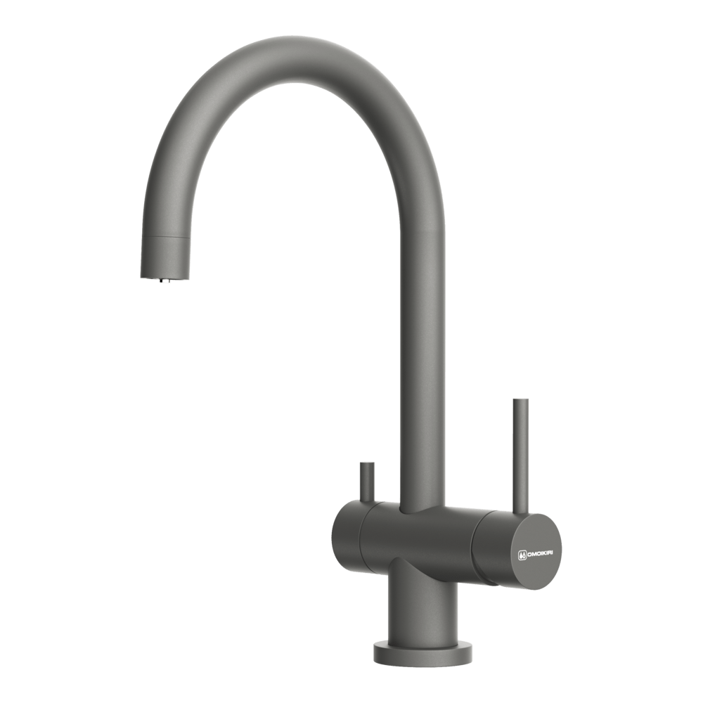 Смеситель для кухни Omoikiri Yamada-P с подключением фильтра оснащен рычажным управлением для регулировки температуры и напора воды. Горизонтальный монтаж на 1 отверстие. Поворотный излив 204 мм.