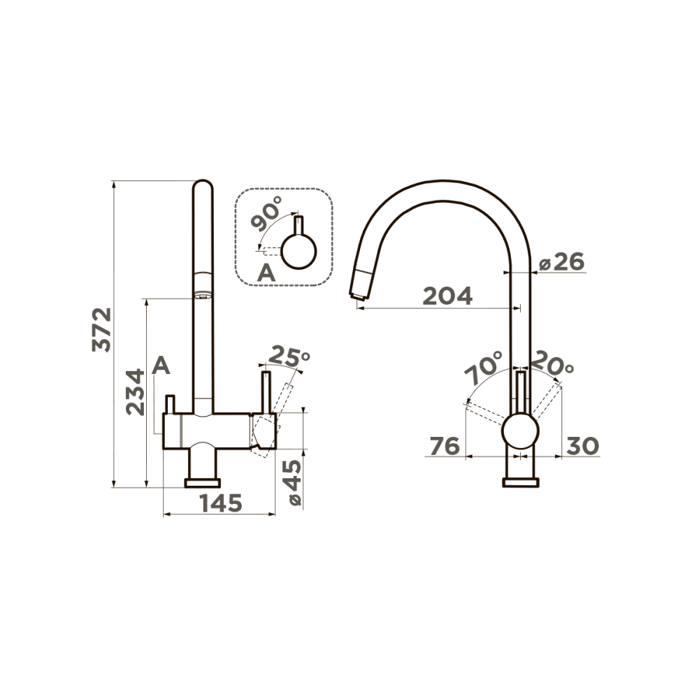 Смеситель для кухни Omoikiri Yamada с подключением фильтра оснащен рычажным управлением для регулировки температуры и напора воды. Горизонтальный монтаж на 1 отверстие. Поворотный излив 204 мм.